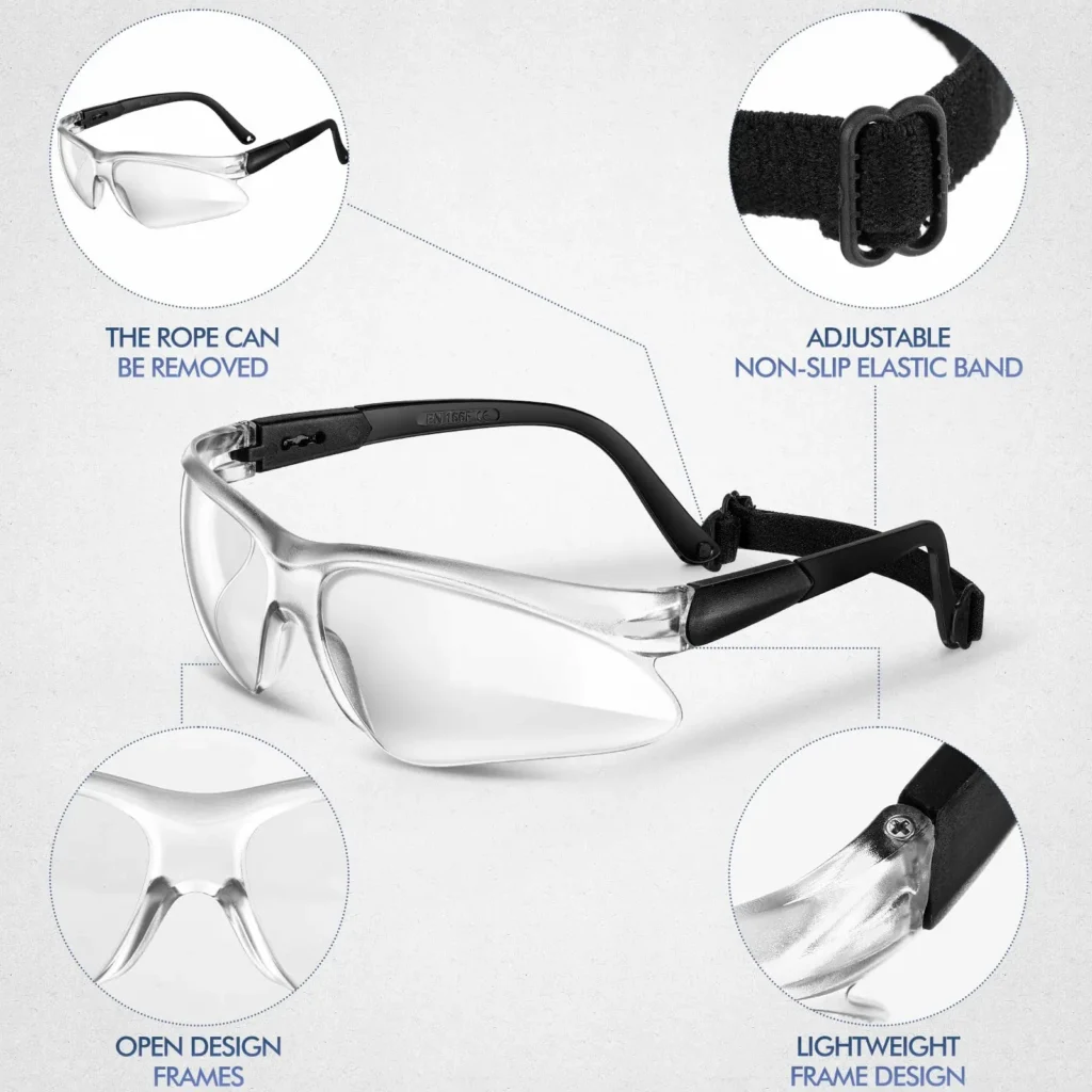 Player safety is our priority. We provide protective racquetball eyewear that meets safety requirements. Shatter-resistant lenses for maximum eye protection. Comfortable fit for long matches and training sessions. Clear visibility without distortion.